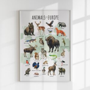 Animals of Europe Educational Poster – Watercolor Wildlife Map | Montessori & Homeschool Printable